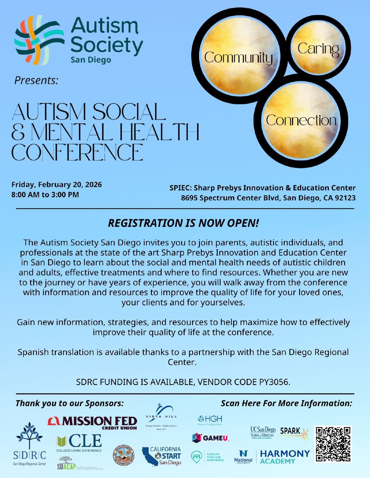 Autism Society San Diego, who "create connections, empowering everyone in the Autism community with the resources needed to live fully"